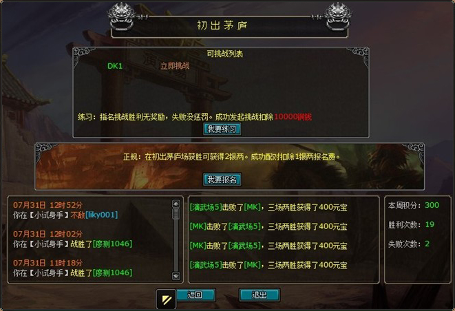 参加需要1银两报名费,获胜奖励双倍报名费。